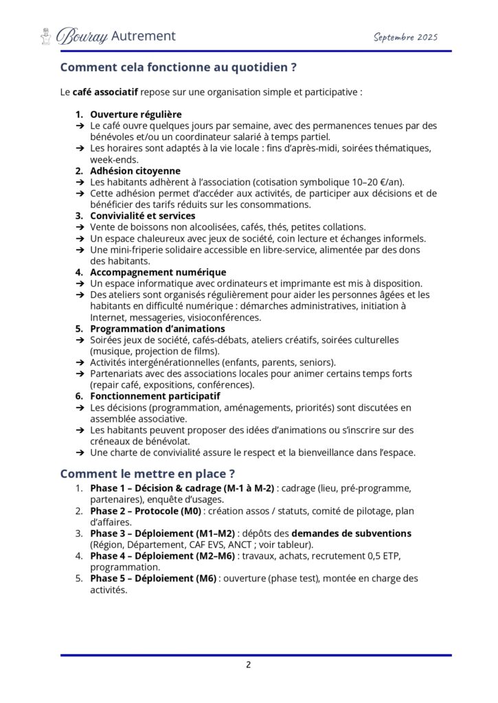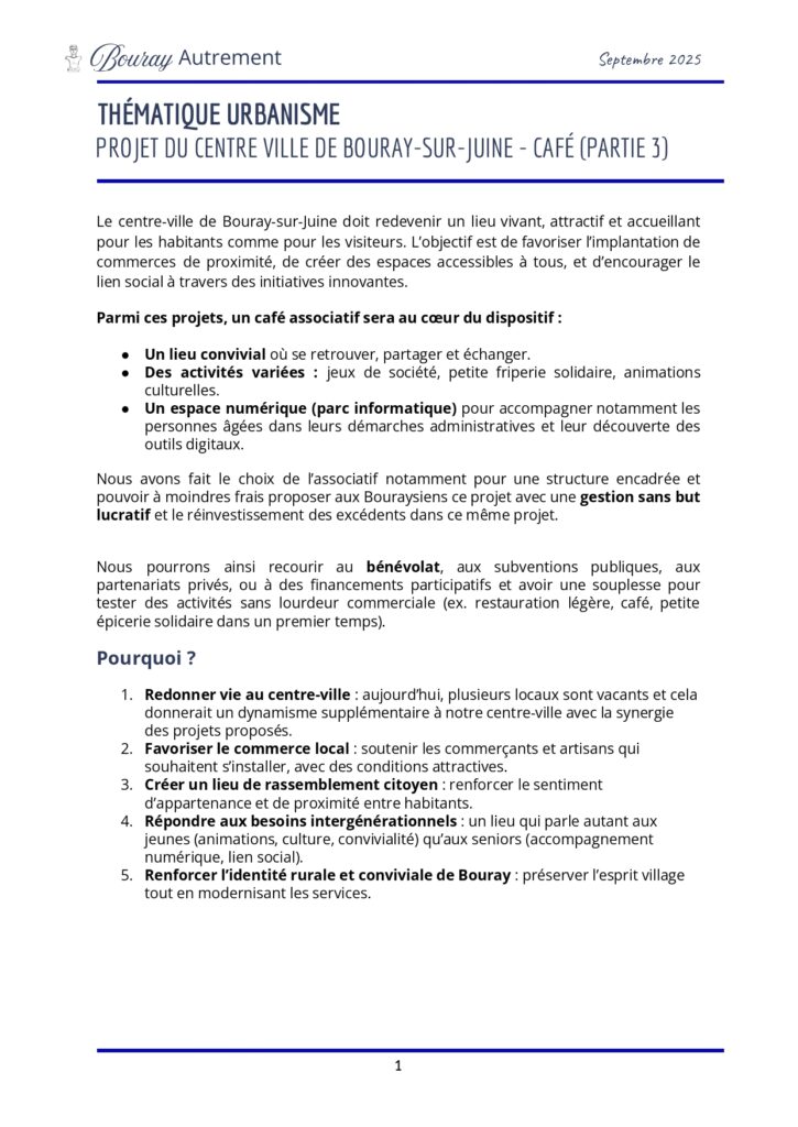 Le centre-ville de Bouray-sur-Juine traverse une période de perte d’attractivité avec plusieurs locaux vacants. Pour y remédier, un café associatif est envisagé comme moteur de dynamisation.