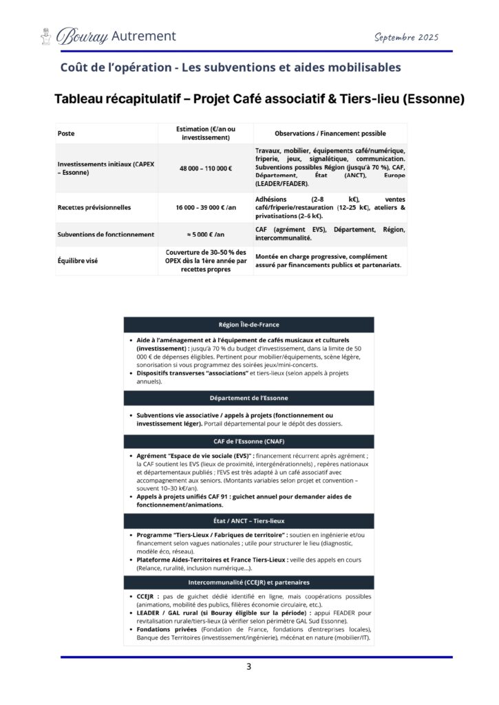 - Subventions publiques (Région Île-de-France, Département, CAF EVS, État/ANCT, Intercommunalité, Europe).